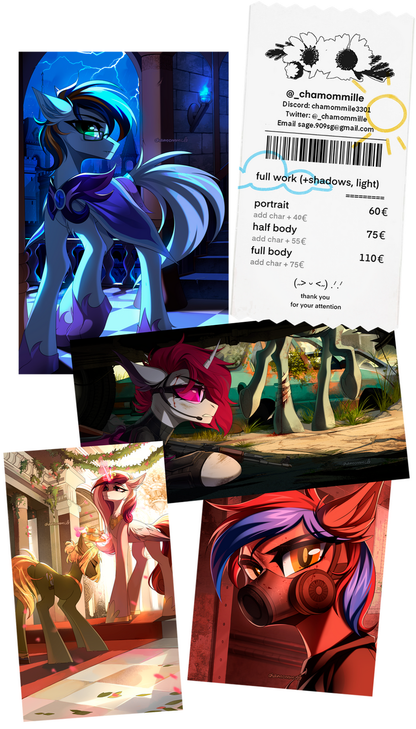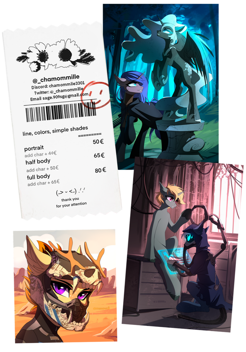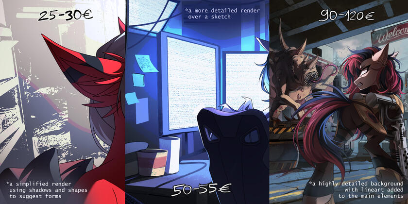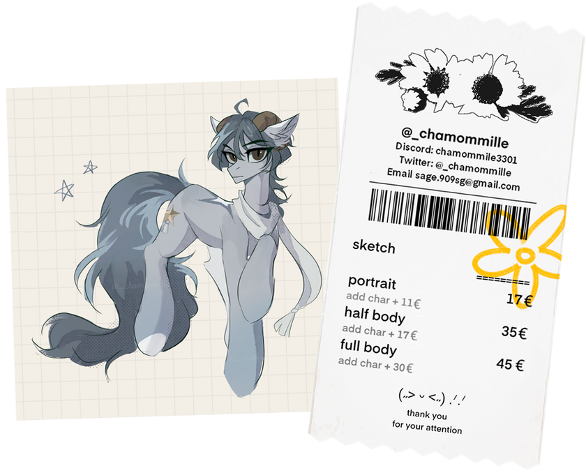 *painted sketch with missing or simple shadows. The cheapest option, but still very good ദ്ദി(。•̀ ,<)~✩‧₊